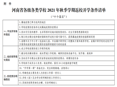 河南各級各類學(xué)校2021年秋季學(xué)期返校開學(xué)條件清單發(fā)布!
