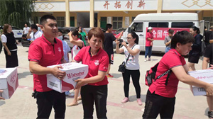 即便烈日酷暑、衣衫濕透,捐贈(zèng)的愛(ài)心人員仍無(wú)人退避、激情高漲